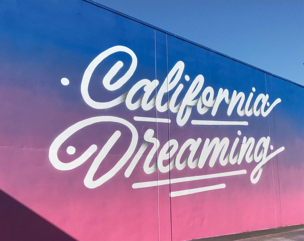 Driving down the busy street of La Cienega Boulevard in Los Angeles, you’ll see a lot of different buildings–offices, restaurants, stores, etc. But also on your way down the road, you’ll be sure to catch a glimpse of Chinese Laundry’s three-story, 78-feet-wide art installation. An ombré of bright pink, purple and blue featuring the words “California Dreaming” in a modern script, the mural is hard to miss.