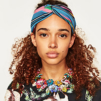 Keep your hair out of your face and off your neck with this multi-color, striped turban.