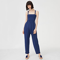 With a comfy, relaxed fit, fluid leg and thick shoulder straps, this jumpsuit is an easy, breezy outfit for a hot summer day.