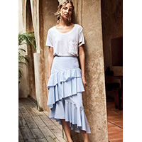 Turn up the volume on your everyday look with this ultra-femme midi skirt with asymmetrical ruffles.
