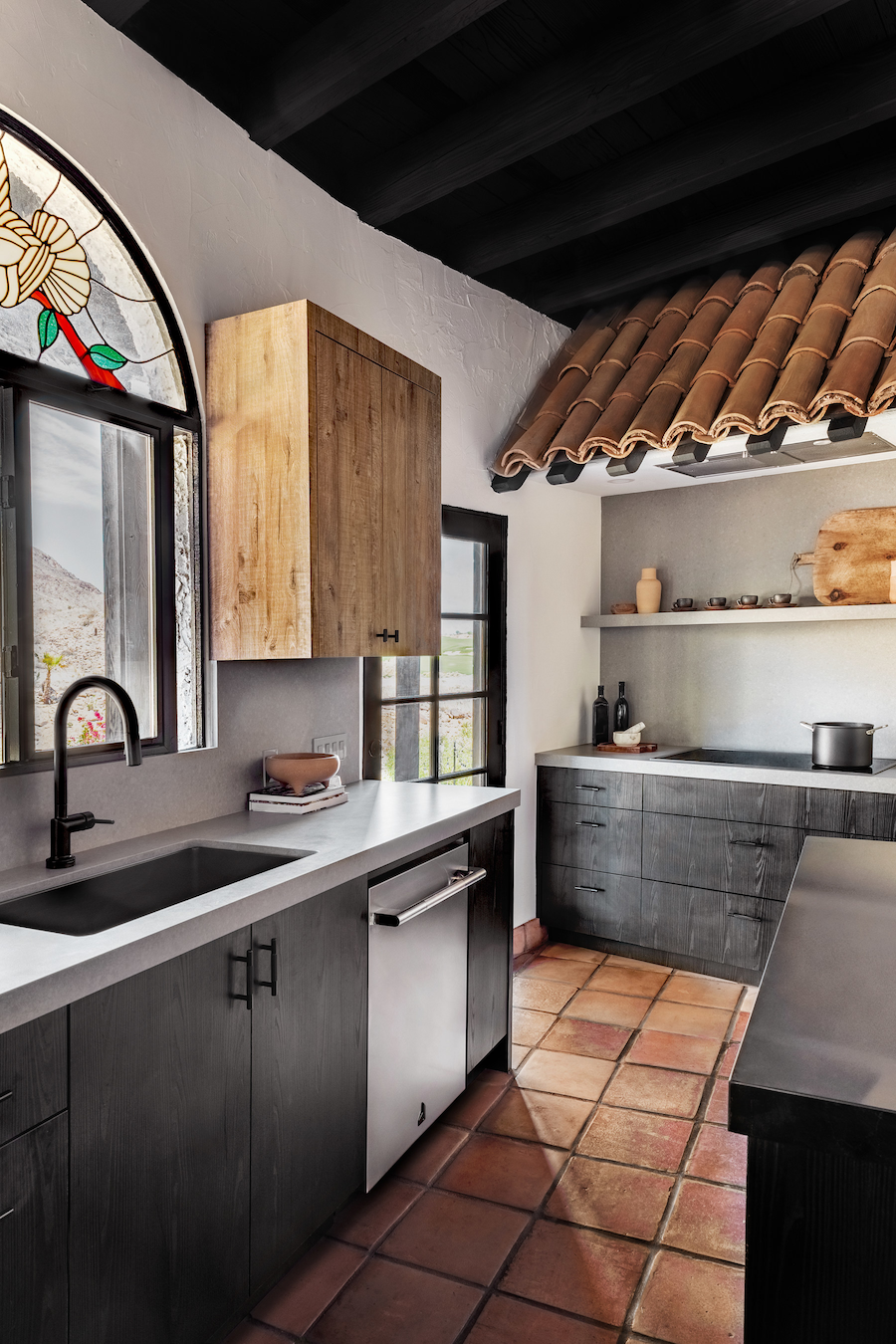 In collaboration with Ferguson, Bath, Kitchen & Lighting Gallery, and designed by Berk and interior designer, Paula Oblen, Casa Tierra is an exquisite fusion of classic Mid-Century Spanish and modern luxury design. Every inch of the picturesque, yet welcoming home thoughtfully brings in new life while preserving its original characteristics, right down to the appliances. In the kitchen, a JennAir Induction Cooktop lives beneath an original terracotta roof overhang — a breathtaking view of the mountainous desert landscape just beside it. The JennAir RISE™ Double Wall Oven, Built-In Microwave Drawer, Dishwasher, and Counter Depth Exterior Dispensing Refrigerator are perfect embodiments of the homes’ ability to blend sleek, modern elements with organic, earthy materials and textures. A sanctuary for entertaining, the main house, poolside bar, and its two casitas are equipped with JennAir RISE™ Under Counter Beverage Centers and Wine Cellars.