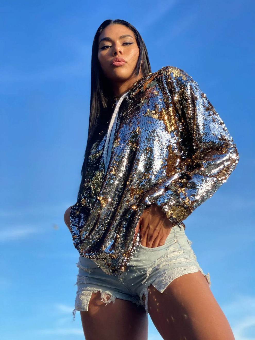 In particular, Donna Leah is inspired by her love of disco, one of the most iconic fashion trends of the 70s. Characterized by glitter, sequins and metallic fabrics, this trend was inspired by popular music and the dance scene at places like Studio54. Paying homage to that time, Donna Leah Designs’ Silver Rain Goddess is a luxurious hoodie inspired by the shimmer of a disco ball. “Music inspired fashion in so many ways. I have always had a passion for disco and when I saw this fabric, I knew that it had to be a part of my next collection,” said the designer.