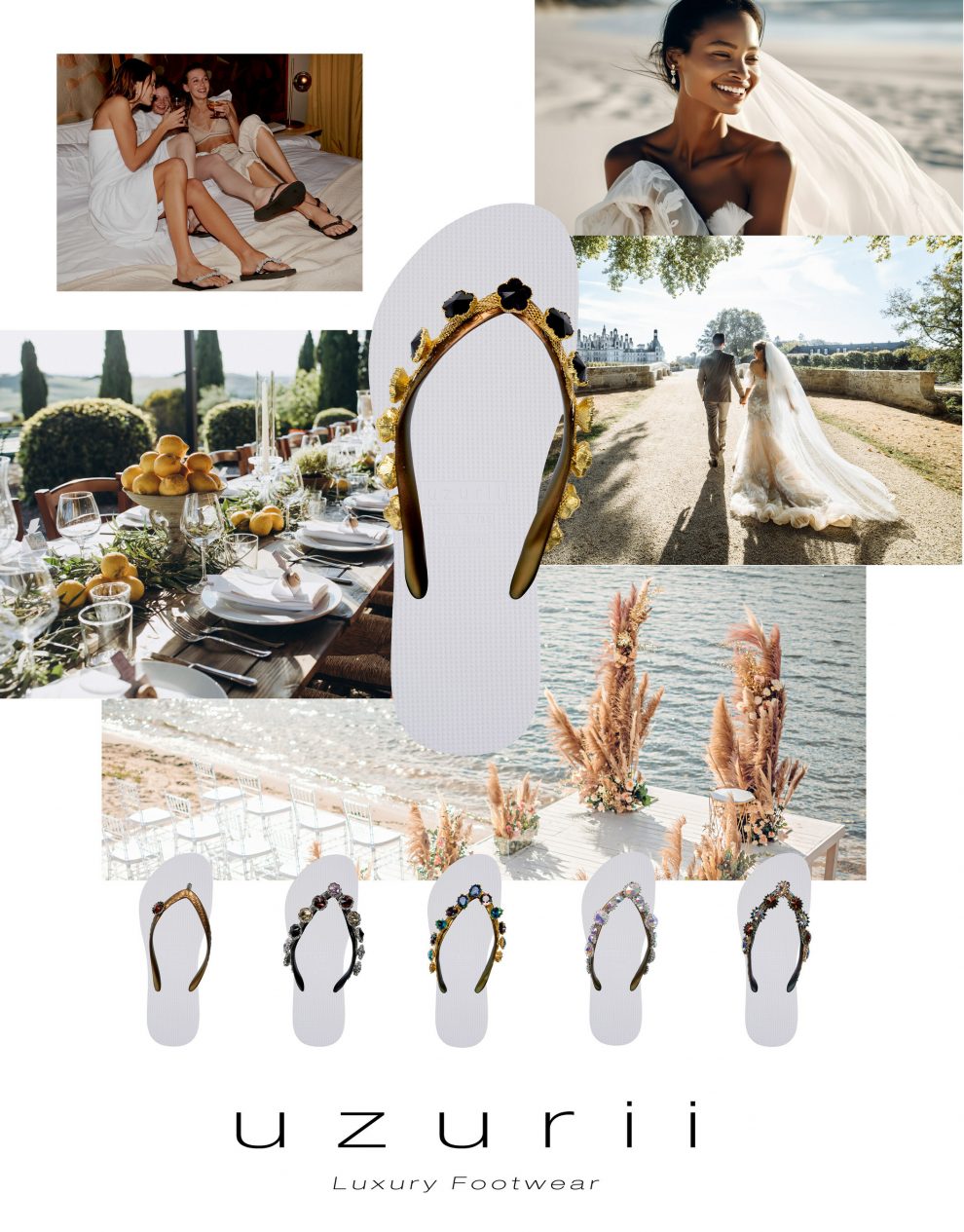 The renowned luxury footwear brand Uzurii has launched a bridal collection. Just in time for the wedding season brides, bridesmaids and mothers of the bride can find their perfect glamourous & comfortable flip flops at uzurii.com. Handmade and gemstone-embellished flip-flops provide the perfect way to keep your special day stylish while comfortable, which will be deserved after a day wearing heels.