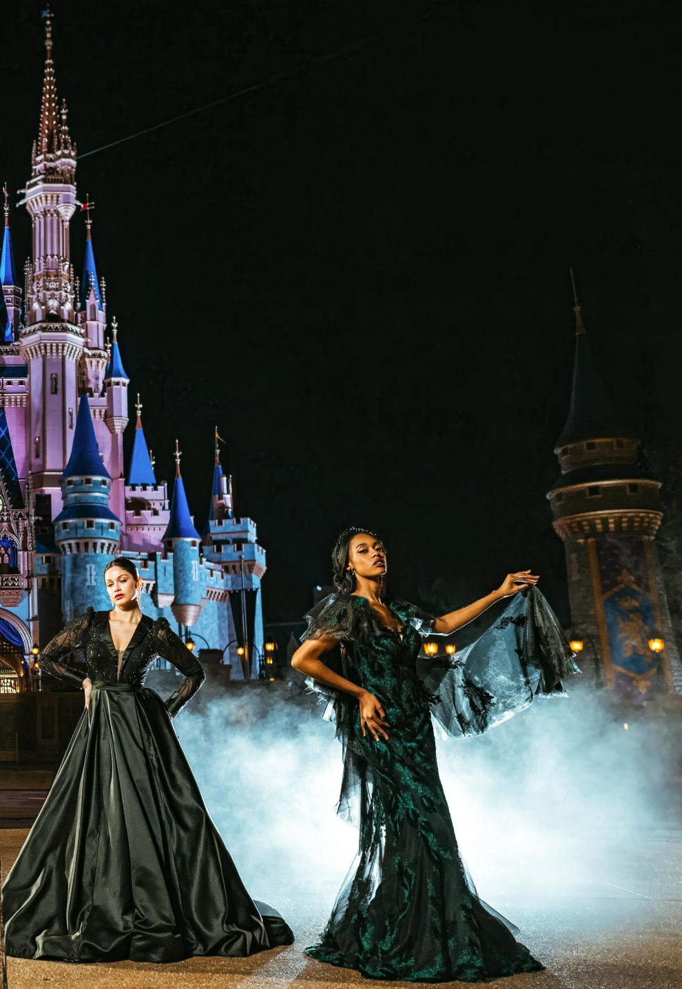 The new dresses are as versatile as they are romantic, each evoking themes from beloved Disney stories and highlighting iconic details and colorful accents from each of the Disney Villains’ character’s looks. All four styles are available now and come in either a black or ivory colorway, starting at $2,000.