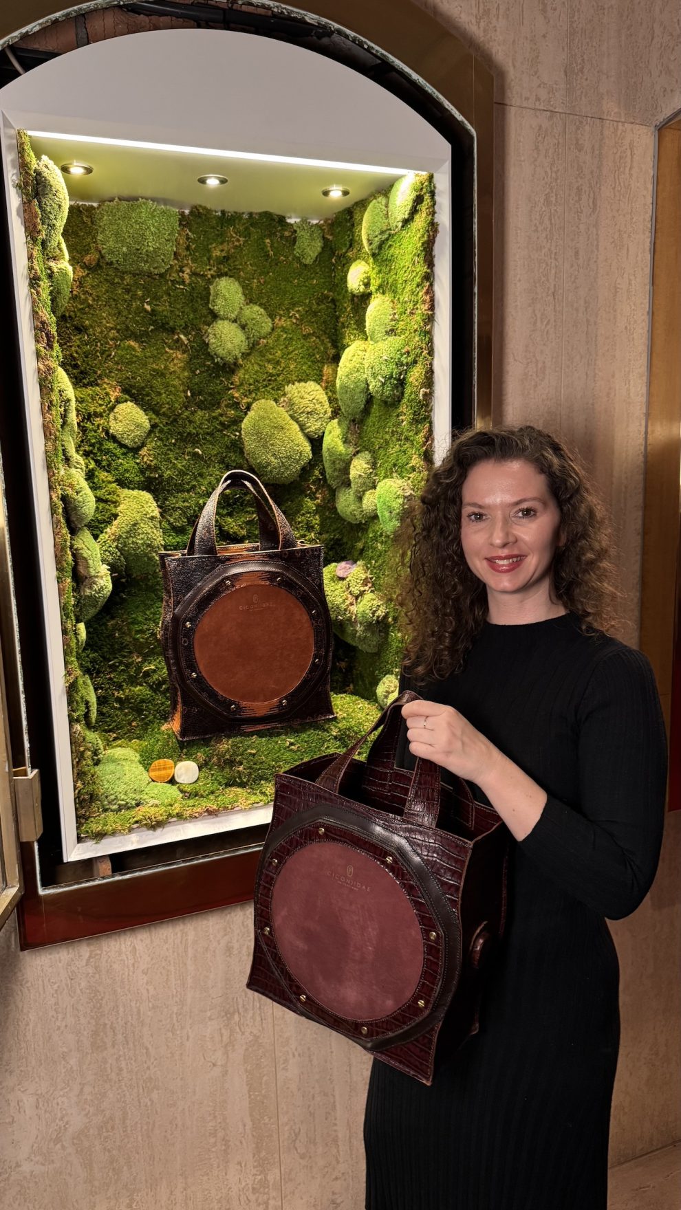 At the center of the presentation stood the Abdimii Lizard handbag—crafted from finely embossed calf leather in the brand’s own atelier in Lucerne. The design embodies Ciconiidae’s signature DNA: clean lines, subtle details, refined materials and symbolic elements such as integrated gemstones. The display, inspired by nature, is lined with real, preserved moss, creating a calm and organic setting for the handbag. This interplay between craftsmanship and nature serves as a visual homage to the brand’s philosophy—quiet Luxury, but with a voice.