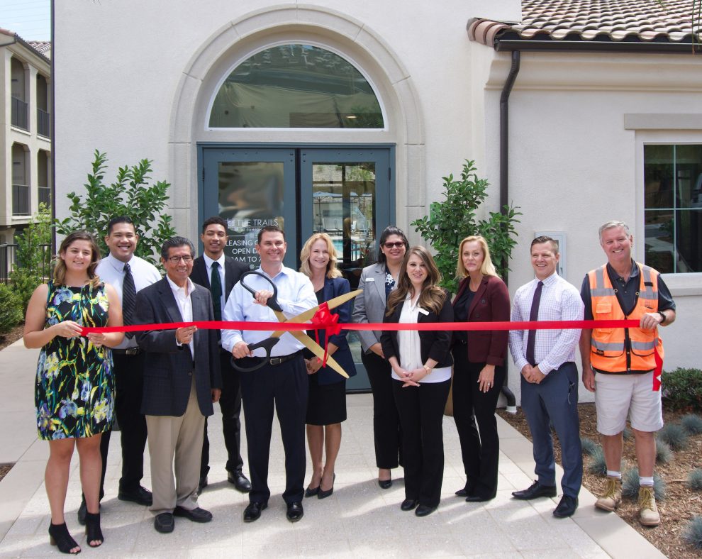A ribbon cutting event held on September 16th by The City of Riverside and The Riverside Chamber of Commerce formally unveiled The Trails at Canyon Crest apartment community. The community features 216 one, two and three-bedroom apartments in a resort style setting. The luxury community is being built by Van Daele Development Corporation and Ares Management and is professionally managed by The REMM Group.