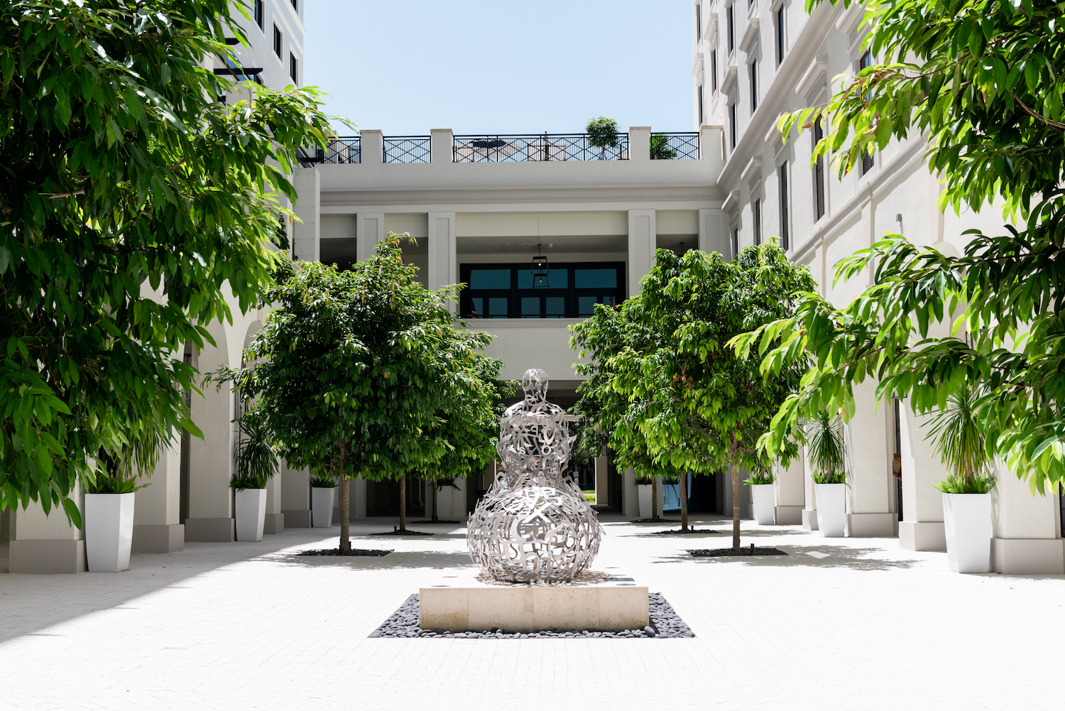 THesis Hotel Miami is an urban resort with modern hotel sensibility and artistic expression. Its chic design is complemented and elevated by Jaume Plensa’s outdoor sculpture, “Storm,”centrally located at the hotel’s Paseo de Riviera, home to the hotel’s al fresco dining, weekend market and outdoor activations. “Storm,” a marvel from Paris, France, sits at the center of the hotel’s open-air Paseo carved at the base of THesis. This plaza, nestled between the buildings, allows light to stream in and glisten off of “Storm” at every hour of the day — making it a spectacle to any guest. Artistic displays are important for THesis because they capture the essence and beauty of a tropical and culturally diverse Miami. Plensa uses his public art around the world as a means of unifying people, strategically incorporating materials like stainless steel into his work to signify the human condition and the ephemeral.