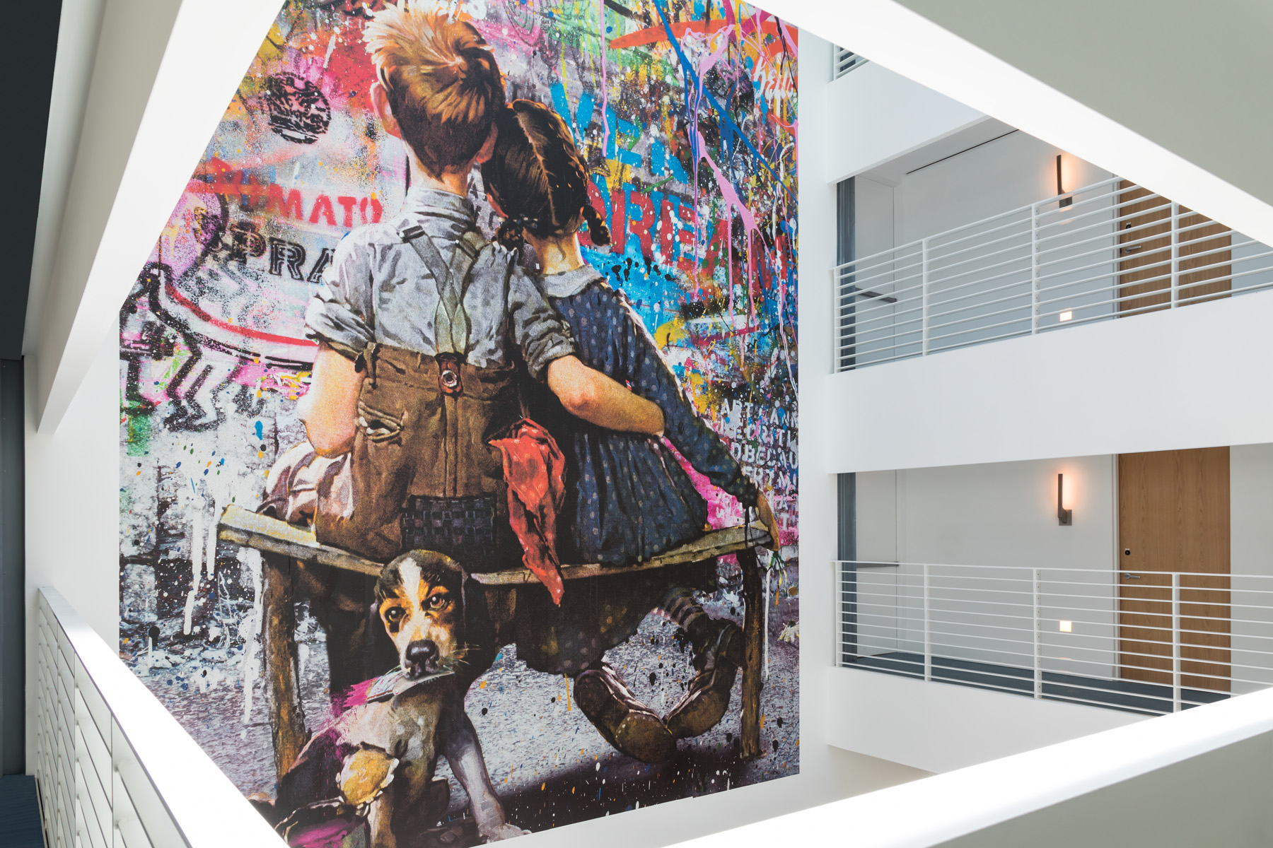 The Gabriel South Beach, located along Ocean Drive, is an iconic Art Deco hotel with a glass-bottom rooftop pool enveloped by Danish artist and philanthropist Mikael B’s mural. With a full oceanfront view of South Beach from the pool, the mural combines Mikael B’s expressive graffiti with a South Beach twist. Mikael B leans into abstract art with spray paint and acrylic as an urban contemporary artist. He creates with the idea that everything can happen, hence his large collaborations with brands like Google and Nike, as well as his internationally renowned artwork. Guests can also find a 30-foot-tall mural by the French-born, Los Angeles-based street artist Mr. Brainwash, known for his large-scale installations and prints of celebrities like Madonna, Kate Moss, and Marilyn Monroe and his practice of subverting cultural iconography similar to Andy Warhol and Banksy.