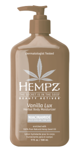 ($19.99 //Hempz.com): Hempz Vanilla Lux Moisturizer with Niacinamide is a versatile, non-greasy lotion. The Vanilla Lux with Niacinamide has an anti-aging ingredient that improves appearance of pore size, skin texture and hyperpigmentation.