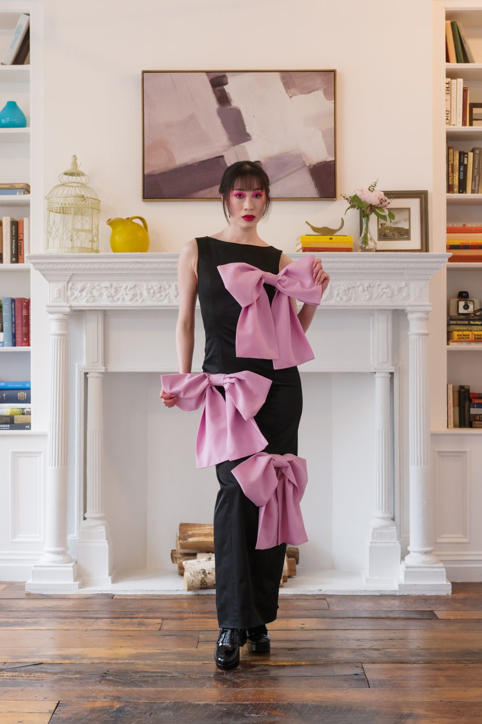 The collection, entitled “The Heist,” draws inspiration from Gage’s favorite childhood movie characters, Wallace and Gromit. The collection consists of 20 unique looks, all sustainably made here in NYC. Emma, the founder and designer of the brand, opted to showcase her collection in an interactive, walk-through style presentation complete with a full scavenger hunt! Guests were given a map upon entry and then were instructed to different vignettes where they could interact with models, feel the garments and get up close and personal with each look. The presentation style was lauded as a fun and exciting experience amid the craziness of fashion week.