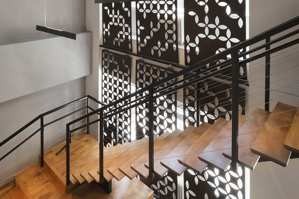 According to MADGI principal Daniel Montroy, AIA, “Pem-America was facing an expiring lease and an office space that was too small for their growing needs at its current location. The firm’s new 16,000 square foot offices are located on the second and third floors of the building, within Pem’s newly-acquired office condominium.”