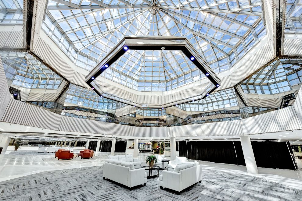 Designed by the prominent architectural firm of Kevin Roche John Dinkeloo, the unique building was constructed as Union Carbide’s corporate headquarters in the early 1980s at a cost of $450 million. In 2002, Dow Chemical acquired Union Carbide and sold the building in 2006. In 2009, a new owner purchased the 1.2 million-square-foot hilltop building at 39 Old Ridgebury Road just off Interstate 84 Exit 1 just east of the New York State line in 2009. Converting it to multi-tenant office space and renaming it The Matrix, it enjoyed some leasing success. However, following the death of the owner six years later in an auto accident, the complex began losing tenants and eventually slipped into foreclosure.
