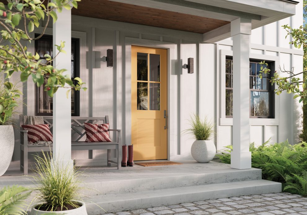 New options for Smooth-Star Shaker-style entry doors include flush-glazed half-lite one-panel doors and sidelites, Impact-rated full-lite flush-glazed options and door divider bar (DDB) and simulated divided lite (SDL) styles. New half-lite 1-panel Shaker doors and sidelites with flush-glazed glass capture the simplicity of Shaker style. Available with privacy and textured, energy-efficient Low-E glass and divided lite styles.