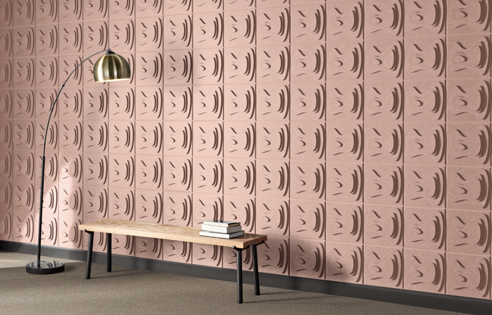 The three new Kirei Hyper Rhythm products include: Breeze Clouds, a playful acoustic cloud that creates overhead moments of movement, texture, color and print while playing nicely with lighting and other essential ceiling elements; Cypher Panel, an eye-catching acoustic panel with a second layer of vertical PET strips to increase sound absorption while adding texture to walls and ceilings and Contour Tile, an organic, textural acoustic tile with stacking levels to increase surface area and create an air gap to improve acoustic performance.