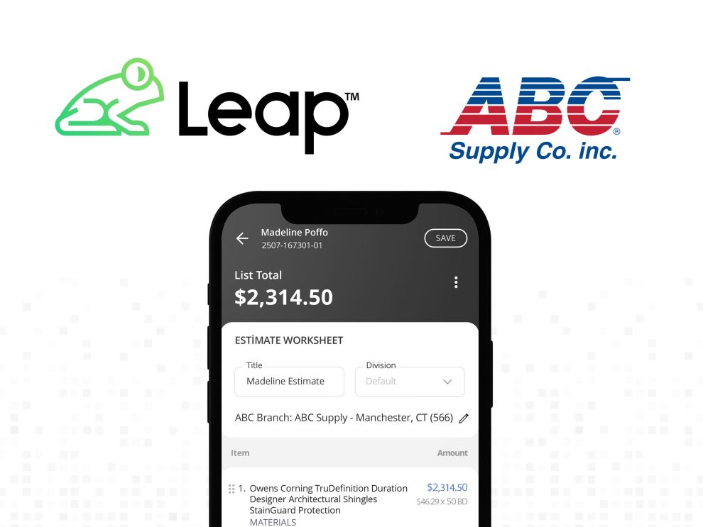 Leap, a complete platform for roofers and remodelers, announced a new direct integration between Leap CRM and ABC Supply Co. Inc., the largest wholesale distributor of roofing and select exterior building materials in North America. The connection gives contractors a single workspace to browse ABC Supply’s branch catalog, pull accurate pricing and availability into estimates and place tracked orders without ever leaving Leap CRM.