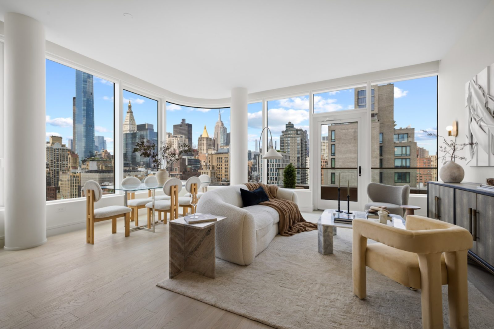 • 12B –  A two-bedroom, two-and-a-half-bathroom residence with multiple exposures and panoramic city views, asking $3,350,000