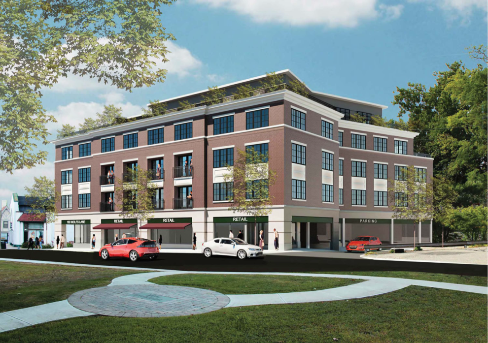 Proposed development of the site would feature a 40,858 SF building plus 10,902 SF lower level garage,13 one-bedrooms, 11 two-bedrooms (2 w/terraces)3 two-bedroom plus den penthouse w/oversized terraces, 34 parking spaces in garage with two-car elevators/lifts.