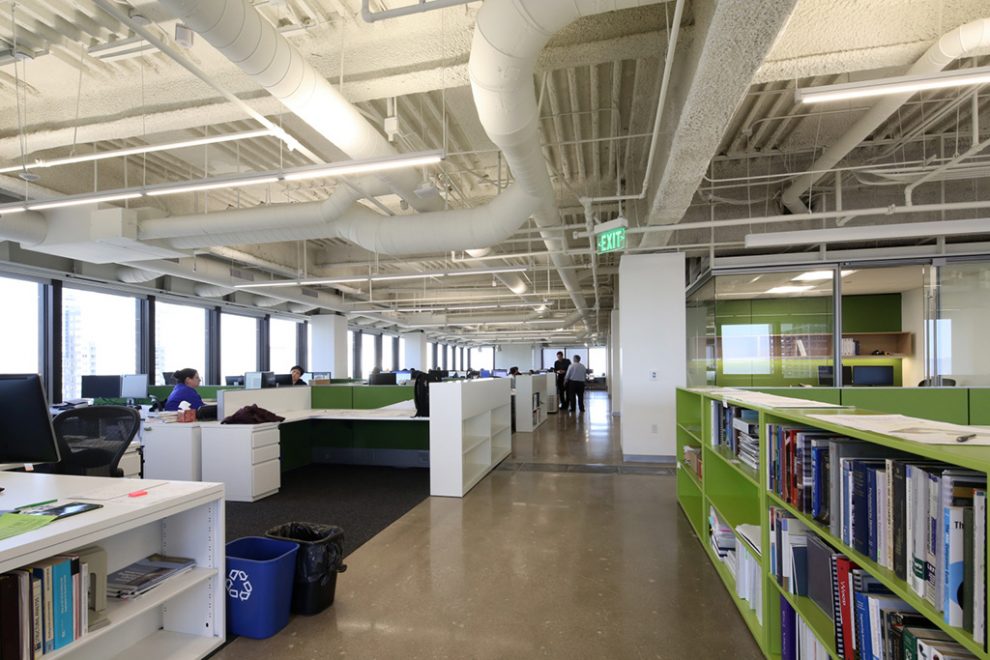 Los Angeles marks Thornton Tomasetti’s eighth LEED certified office project. The Kansas City, Chicago, Philadelphia, Denver and Washington, D.C. offices are also LEED Gold certified. The San Francisco office and an expansion project in Chicago earned the LEED Platinum rating. The firm’s corporate sustainability policy calls for all new offices and major renovations of 4,000 square feet or more to seek LEED CI certification at the gold level or higher.